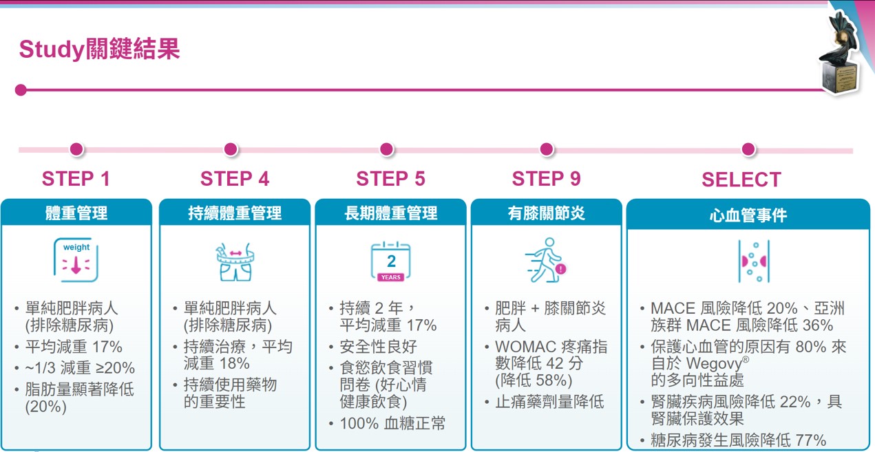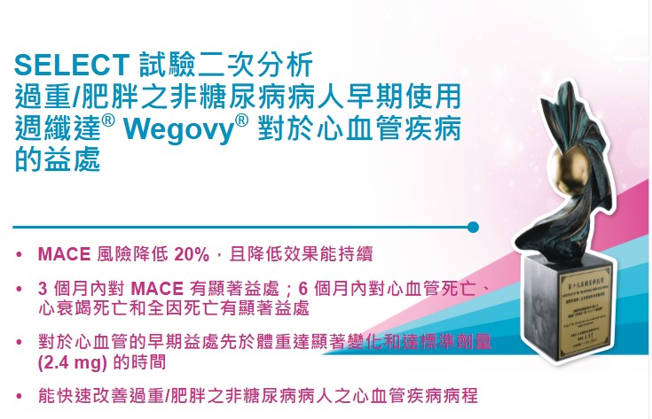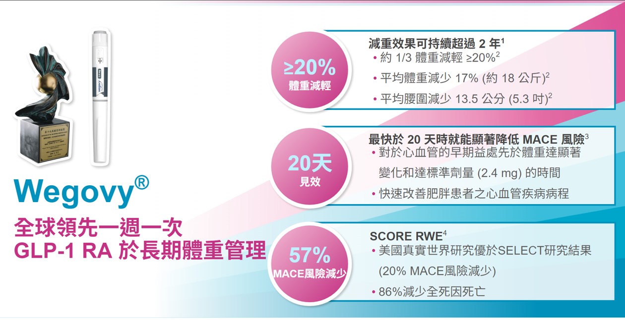 週纖達有減重適應症、青少年減重適應症以及心血管好處的適應症。