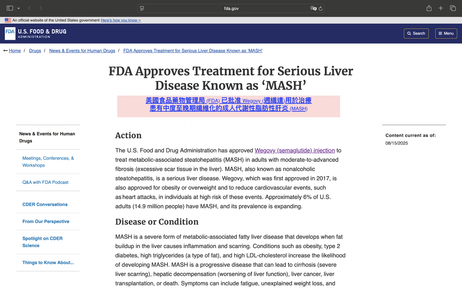 猛健樂臺灣有拿到第二型糖尿病適應症及減重的適應症,在青少年及心血管好處還沒有拿到。