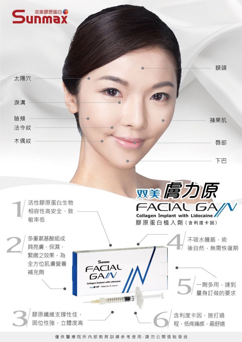 針對修飾臉部肌膚紋路、皺紋、皺摺、豐唇及修飾臉部輪廓。