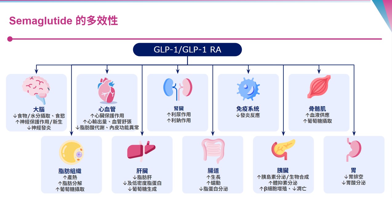 猛健樂臺灣有拿到第二型糖尿病適應症及減重的適應症,在青少年及心血管好處還沒有拿到。